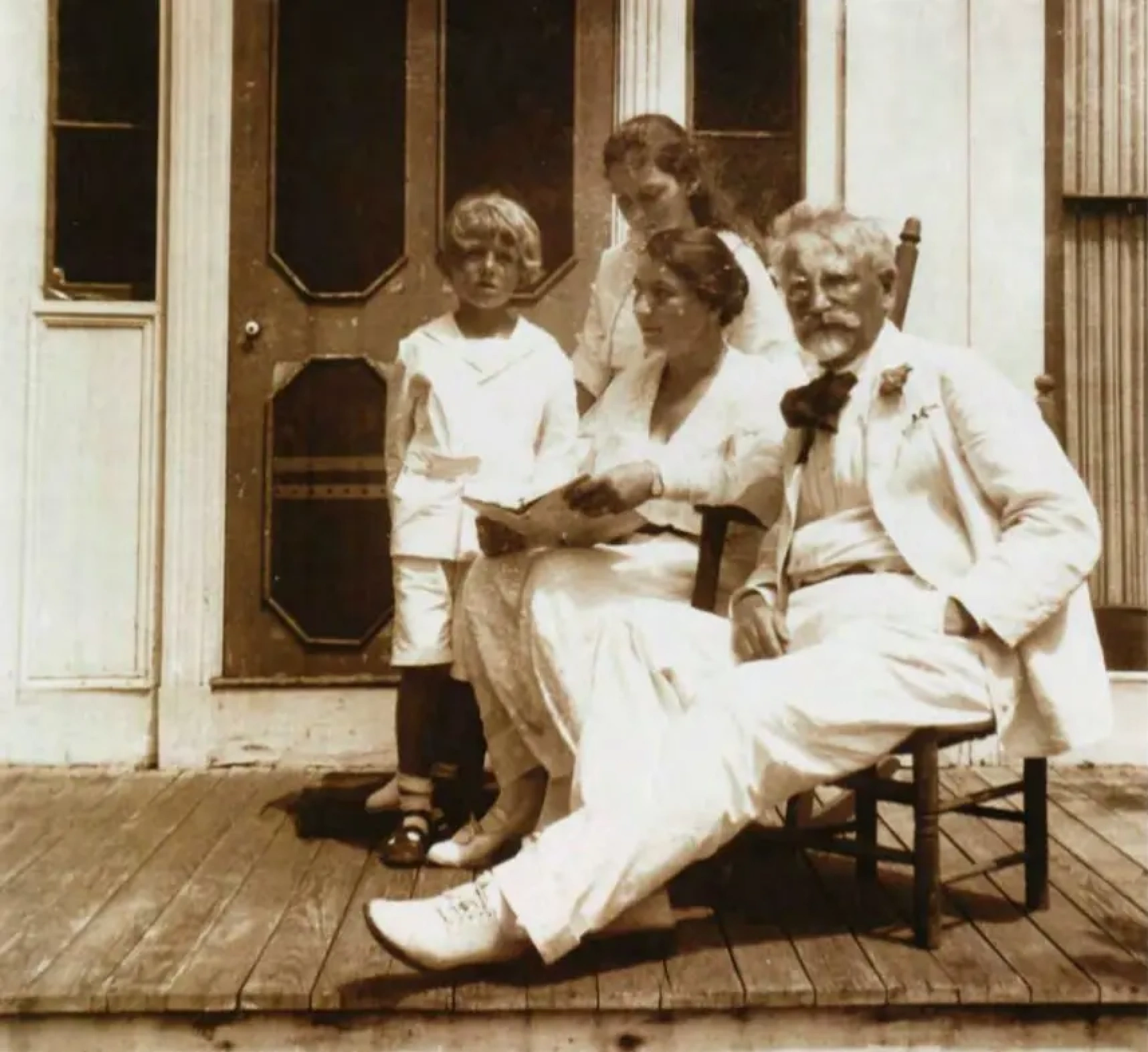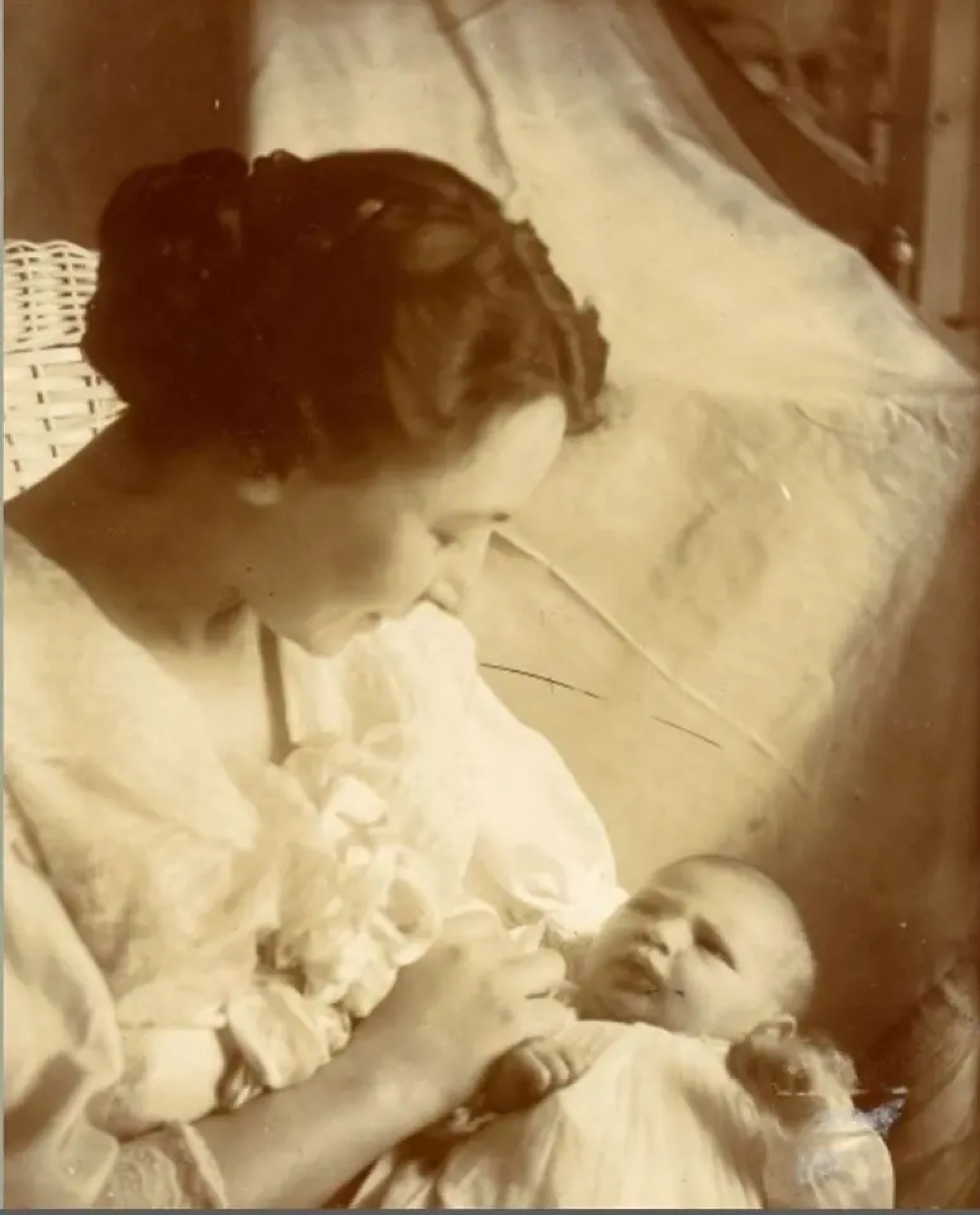 Мария Муха с детьми Ярославой и Иржи в Збиро, Богемия. Фотограф Альфонс Муха. 1919