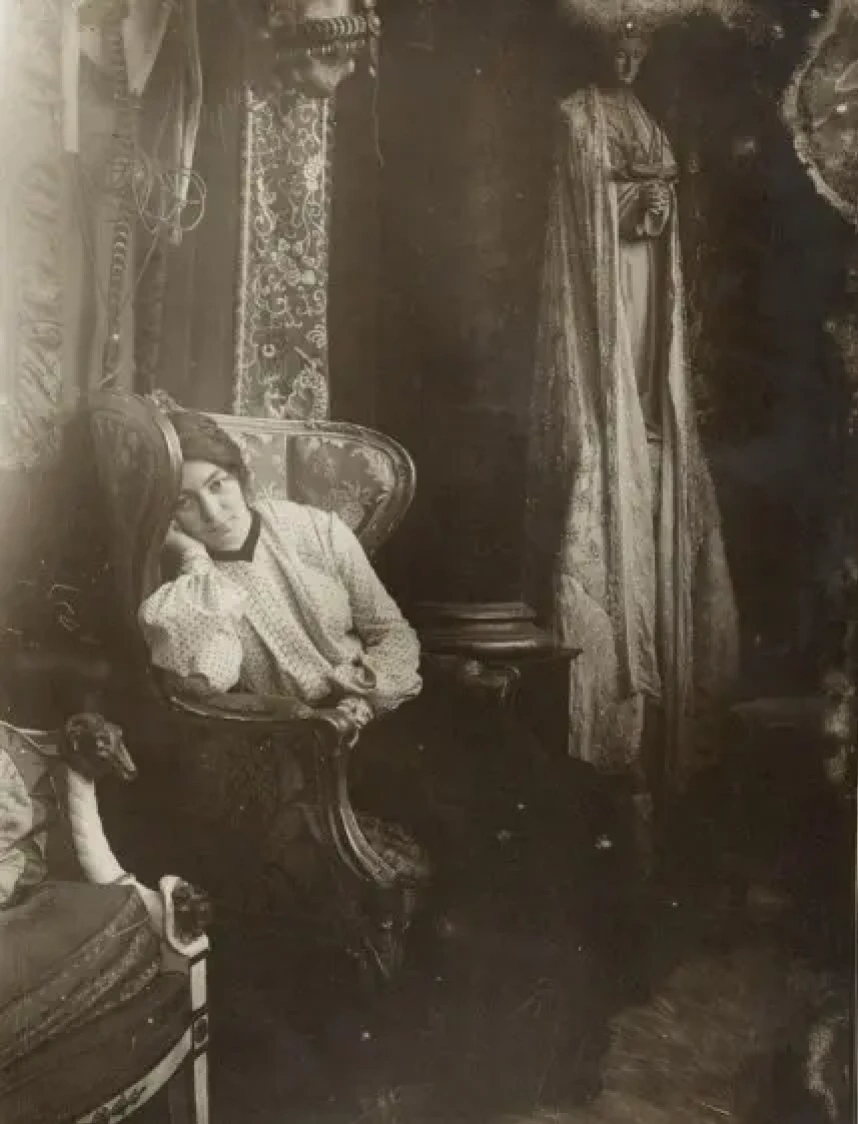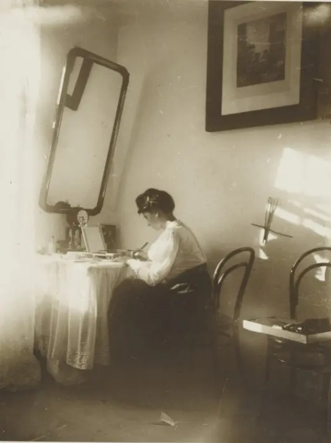 Мария Хитилова в мастерской Мухи, Рю дю Валь-де-Грас, Париж. 1903.