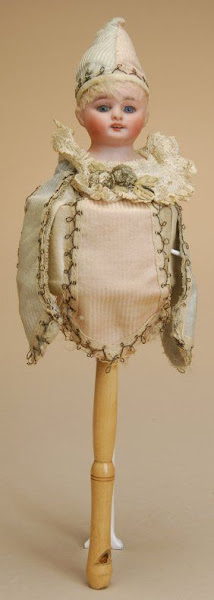 В середине XIX века во Франции появились необычные куклы - вместо ног у такой куклы была деревянная, либо из слоновой кости палочка с маленькой коробочкой вместо туловища, и изящной головкой. Пелерина, закрывающая музыкальную «укладку», была богато декорирована шёлком, кружевами, золотой тесьмой. На краях часто пришивали крохотные колокольчики или бубенчики, которые при любом движении издавали мелодичный звук. Головки изготавливались из неглазурованого фарфора, но позже появились также и целулоидные (такие стоили гораздо дешевле).