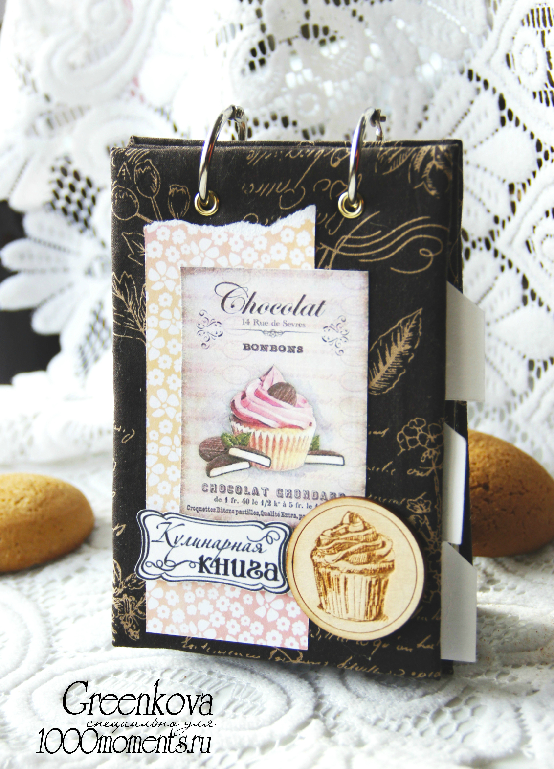 Размер этой кулинарной книги - 10х15 см. Вы же можете сделать книгу побольше или еще меньше..