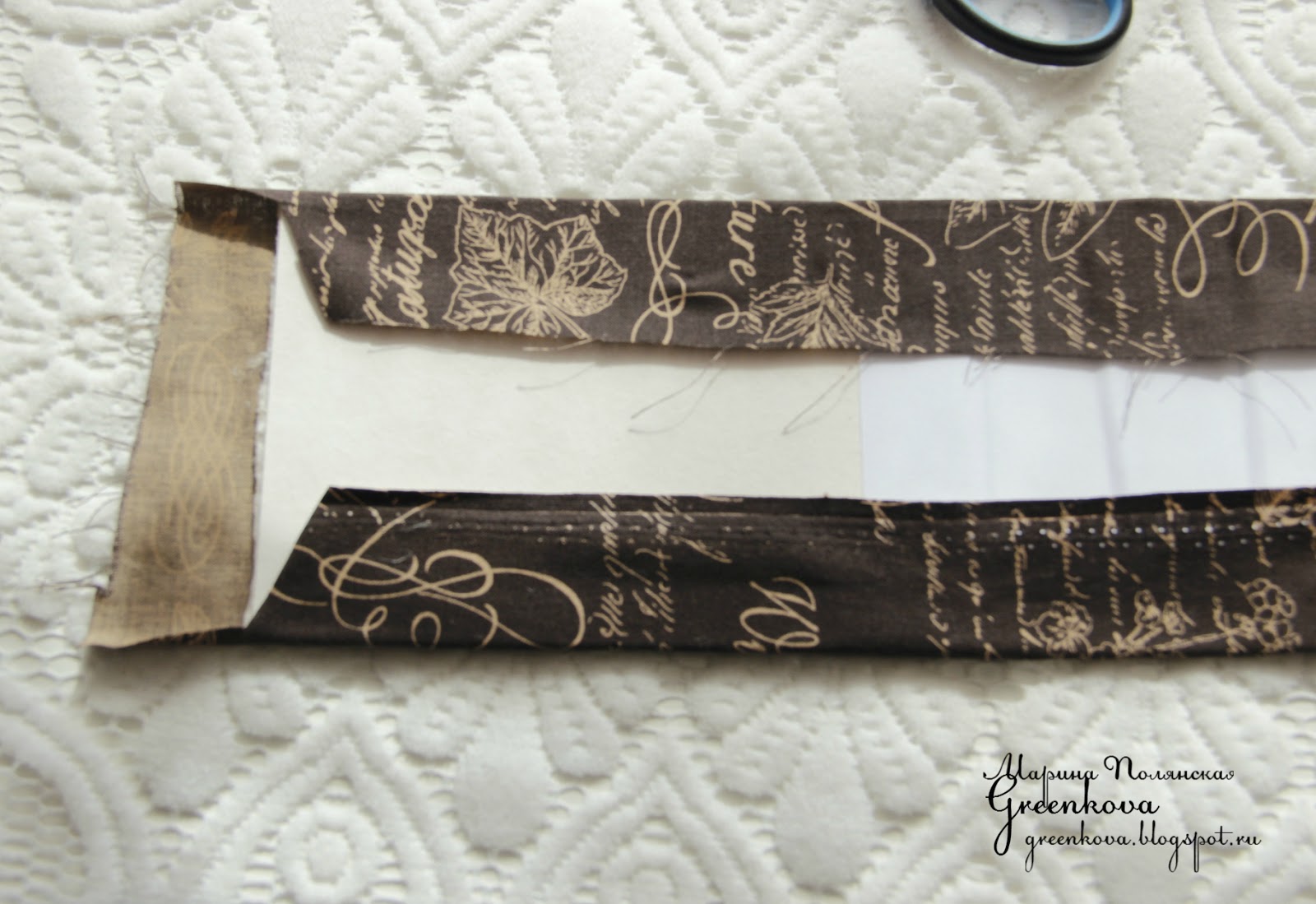 Переворачиваем конструкцию и накладываем на ткань. Середину, которую мы смазали карандашом, хорошо прижимаем и разглаживаем.