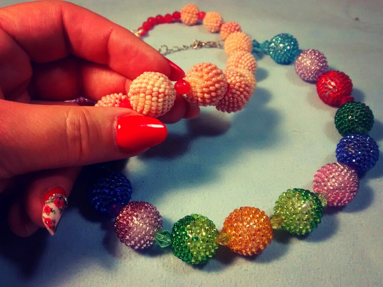 Мне очень хотелось вас все разжевать и показать. Техника оплетения бусины, очень благодарная - освоив её, вы сможете найти множество разных интересных применений в ваших творческих проектах. Ниже, я размещу несколько моих изделий, где я применяла такие бусины.