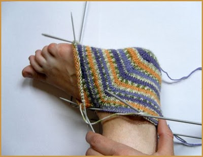 Вот такой интересный способ вязания носков придумала хозяйка