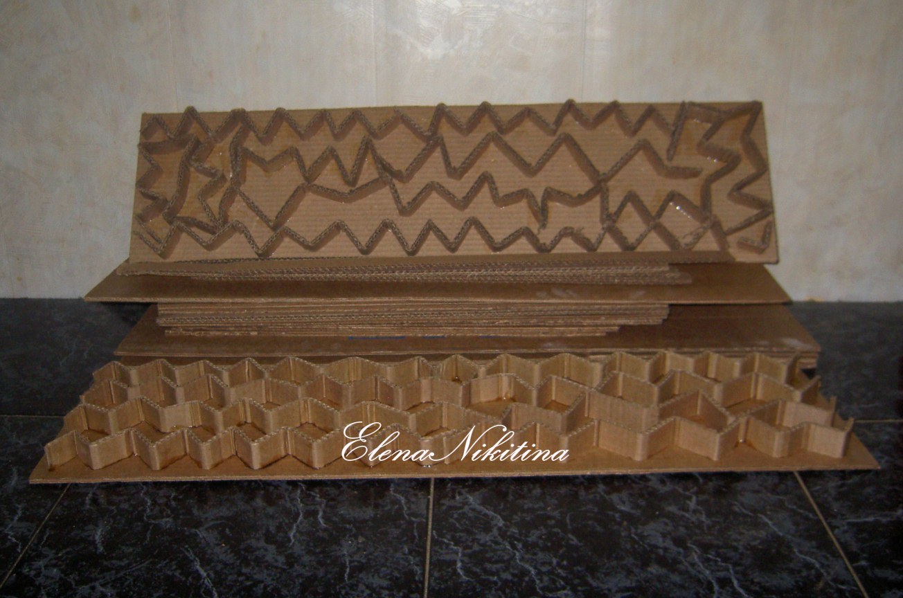 1. сам картон - лучше всего, если между слоями будет два слоя гофры (говорят, называется пятислойный)