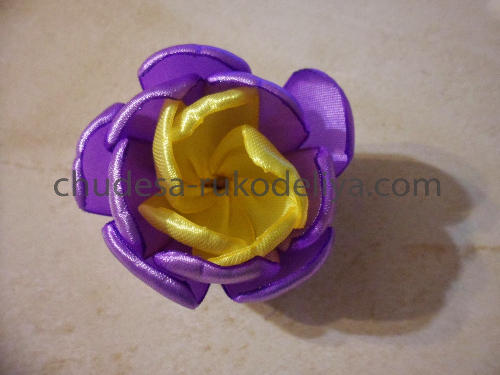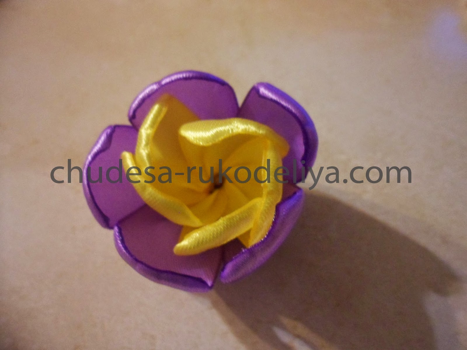 Для внешних лепестков-фиолетовая лента, длиной 5 см-15 шт.