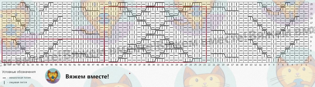 На схеме даны только лицевые ряды, чётные следует вязать по рисунку.
