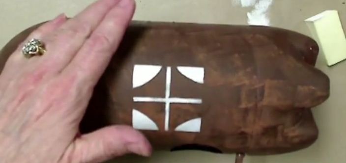 Для стен я смешала тёмно-коричневую, желтую и немного красной краски, цвет получился шоколадный. Крашу стены полностью, чтобы заполнить все выемки.