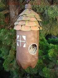 Обрезаем уголки картона по кругу. Готовую основу крыши приклеиваем к банке или бутылке Титаном или малярным скотчем. Кому как удобнее. я делала и тем и тем в разных случаях.
