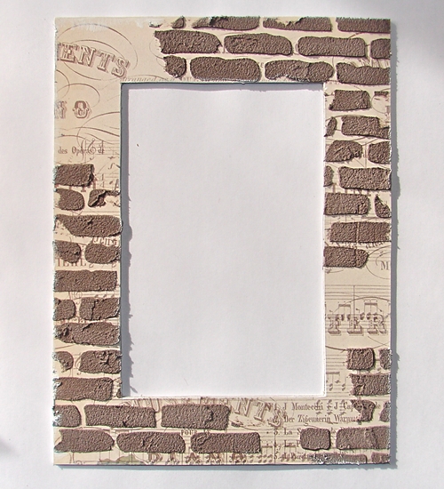 Далее декорируем рамочку. Недавно я стала обладателем замечательной маски "Кирпичная стена". Очень мне нравится делать эти кирпичики. Для этого нам понадобится структурная паста, коричневая акриловая краска и шпатель, ну или его заменитель (можно взять кусочек плотной бумаги) и маска.
