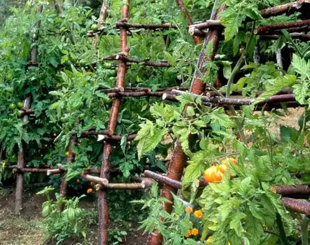 Получить богатый урожай сочных и вкусных помидоров поможет правильный процесс выращивания овощной культуры. Для того чтобы томаты активно разрастались, рекомендуется приподнимать ветви над землей, так растение будет чувствовать себя комфортней, что положительно скажется на качестве и количестве плодов. К сожалению, огородники очень редко используют опоры для выращивания томатов, даже не представляя, что они теряют из-за этого.