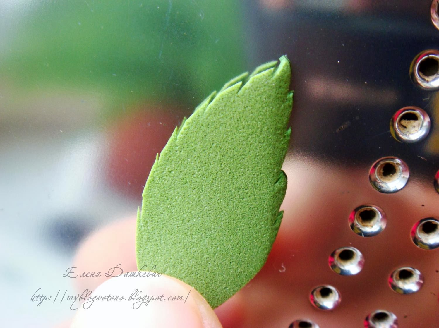 Можно создать и фактуру листика, например с помощью молд. Но у меня их нет и я воспользовалась скелетированным листиком. Нагреваем утюг до средних температур, ненадолго прикладываем листик к утюгу,