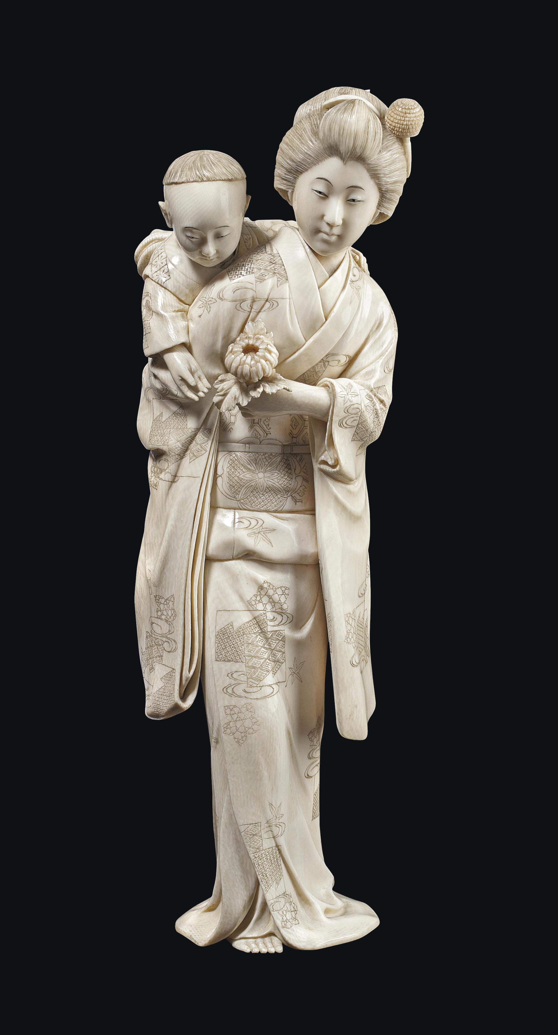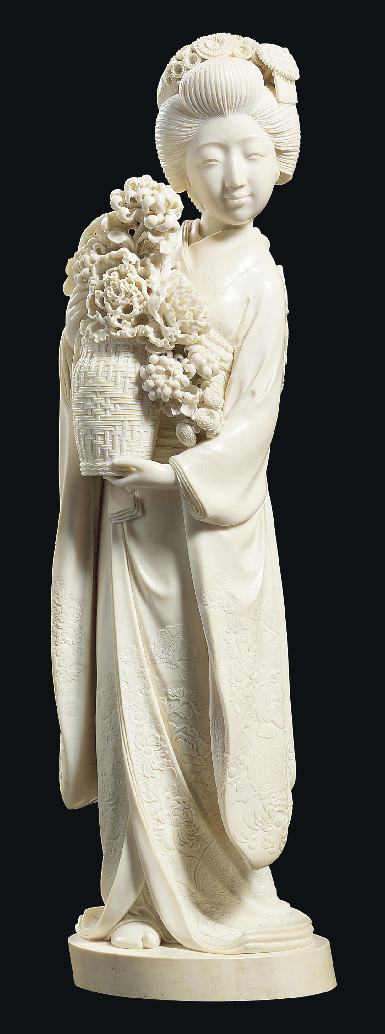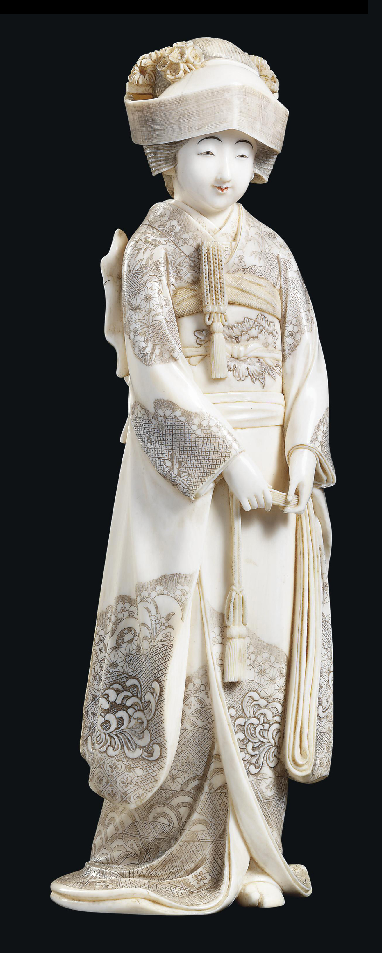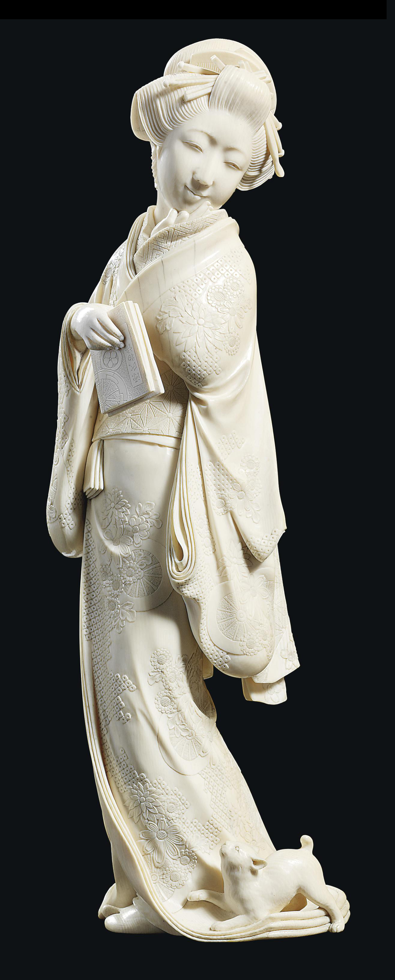 Изящное окимоно из слоновой кости Токийской школы [Скульптурный орнамент]