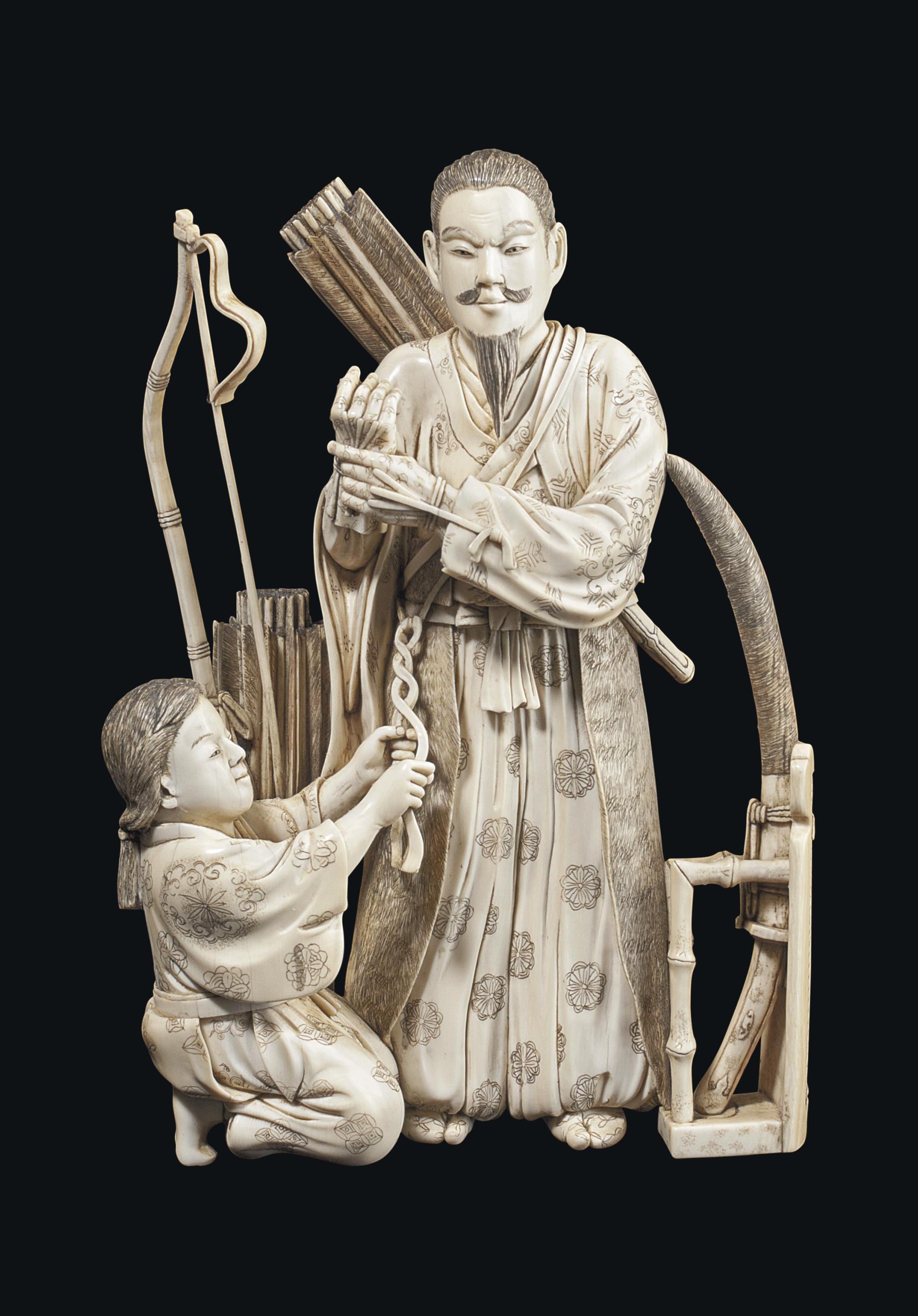 Большое Окимоно Токийской школы из слоновой кости [Скульптурный орнамент]
