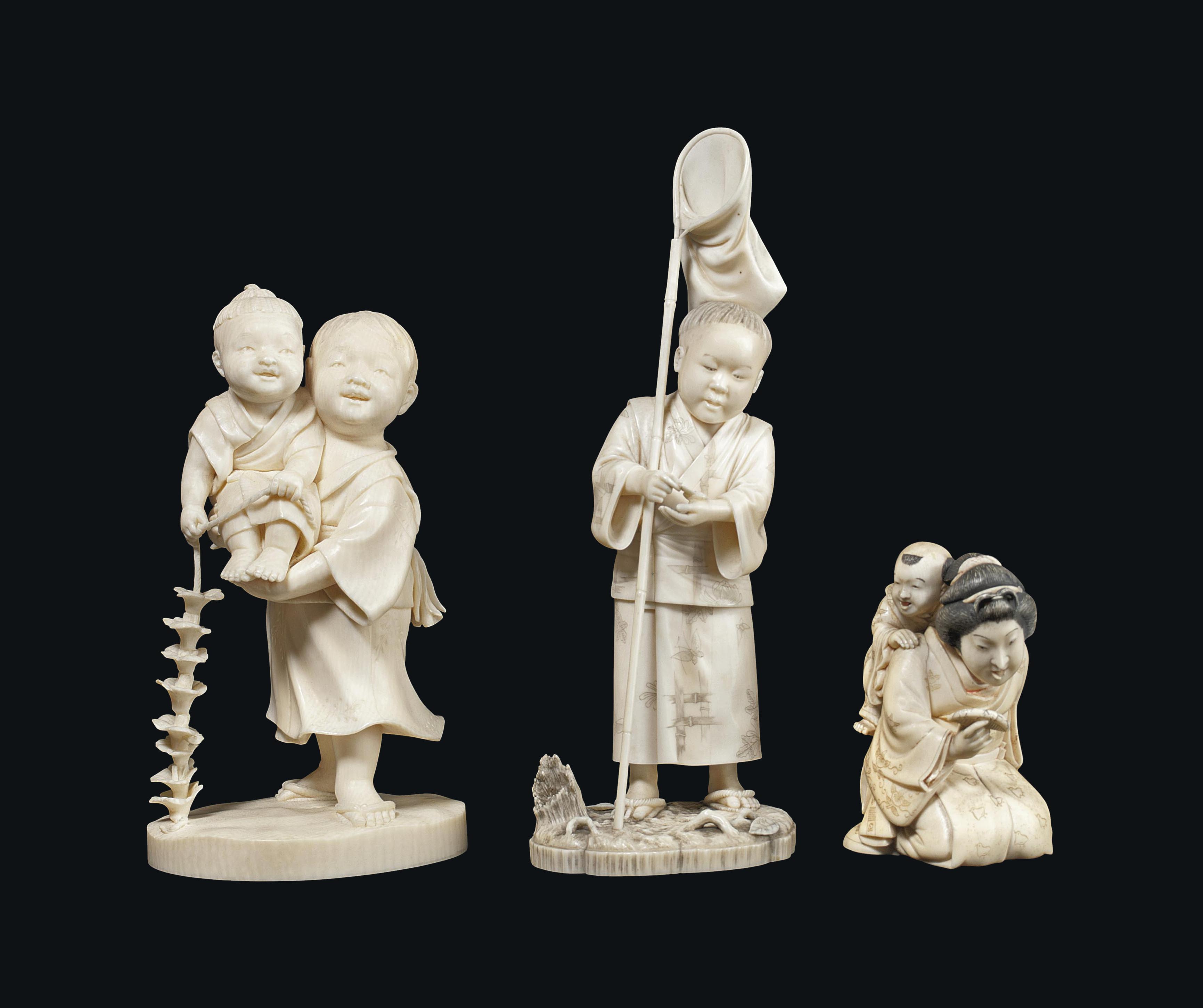 Три окимоно из слоновой кости [Скульптурный орнамент]