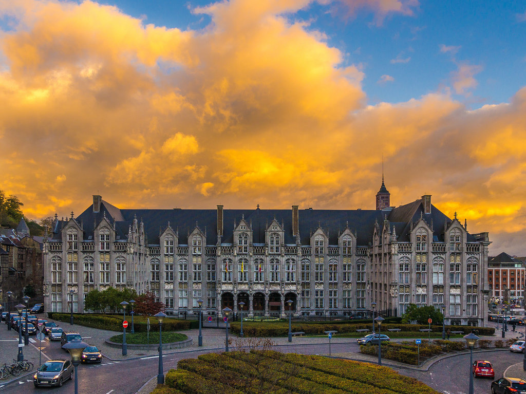 Здание выполнено в готическом стиле. Первый вариант этого дворца был предложен еще в XI веке, а современный облик он приобрел лишь в XVI веке. Располагается дворец на площади святого Ламберта. Виктор Гюго признался, что не видел здания более величественного, строгого и грандиозного. Таким оригинальным является смешение стилей, в котором это здание выполнено.