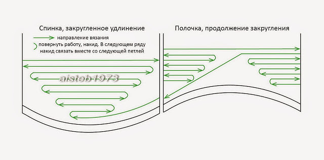 На заметку. Схемка поворотов для плавного удлинения спинки укороченными рядами