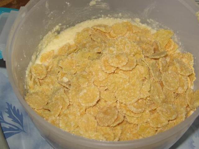 Потом добавляем кукурузные хлопья