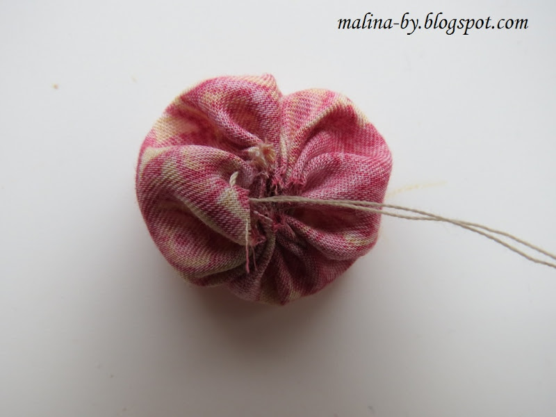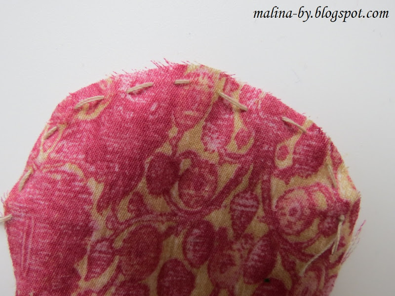 2. Прошиваем вручную по контуру и стягиваем нитку.