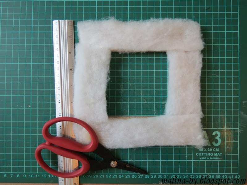 5.Из картона потоньше вырезаем прямоугольник такого же размера, как и наша рамочка.