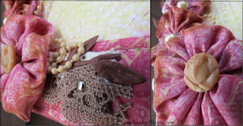 В качестве серединок цветов использовала пуговицу в виде розочки и брадсы