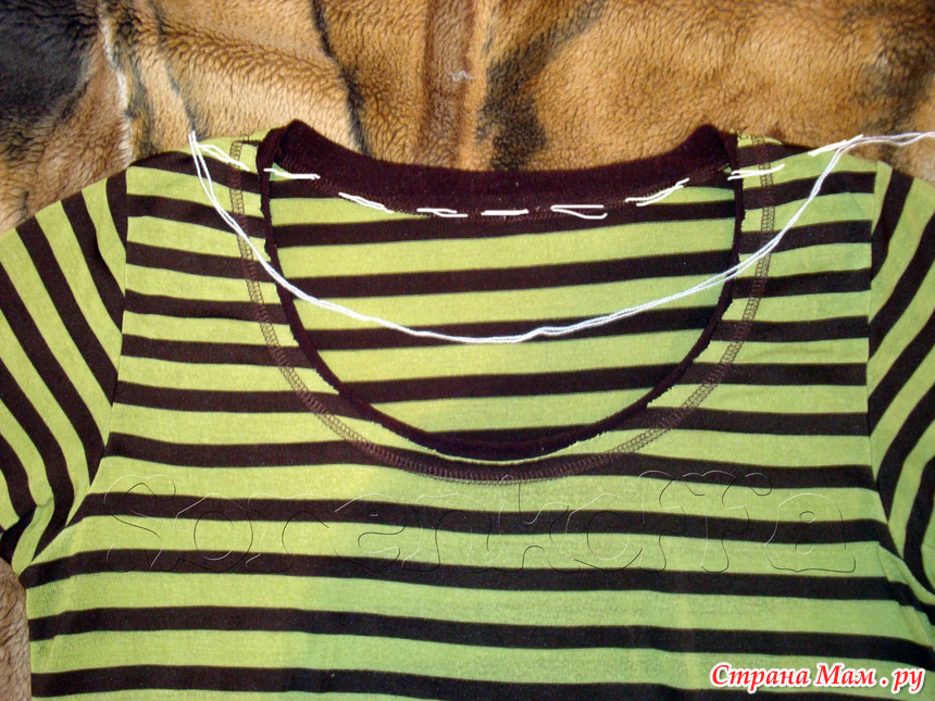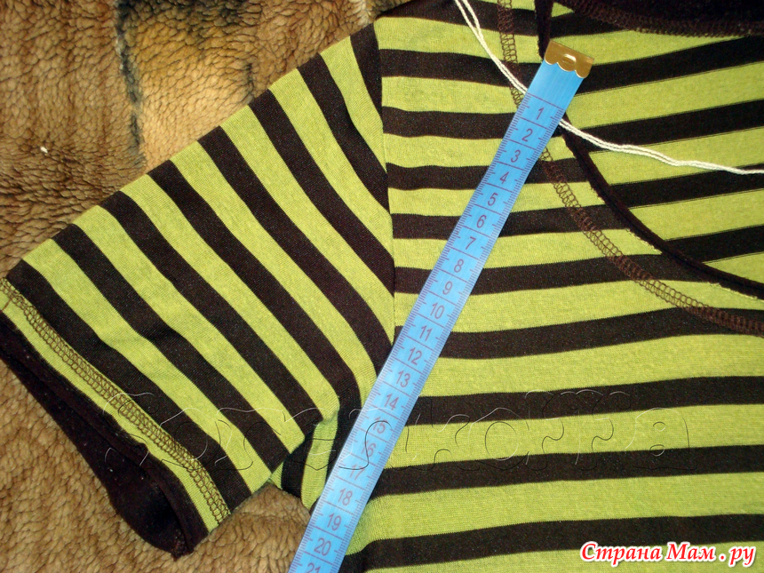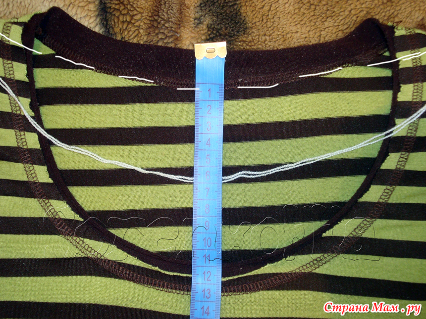 Теперь эти все мерки можно перенести на одежду и замерить то, что нам нужно будет при рассчете вязания. Чтобы легче было измерить окружность горловины, я ее "обвела" нитью, длину которой потом измерила, это и получилась искомая длина, в моем случае - 66см.