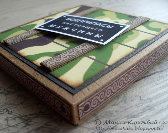 На крышке захотелось сделать пообъемнее - досочки и табличку приподняла на картон. Для досочек ещё и гофрокартон взяла - так интереснее смотрится)))