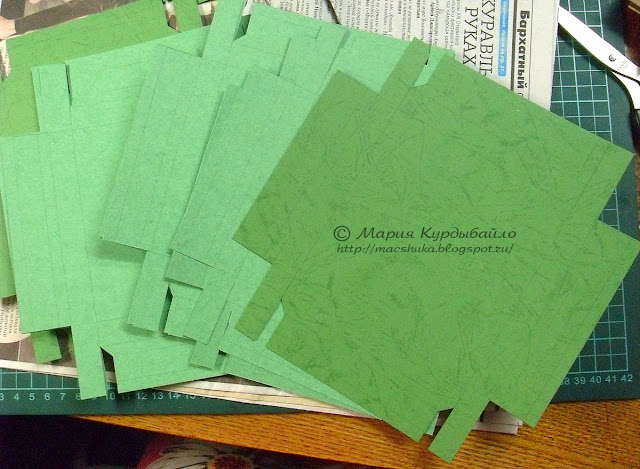 Вот из оставшегося неликвида - всякие испорченные распечатки, да криво обрезаные кусочки и насобиралось ещё на три коробочки.