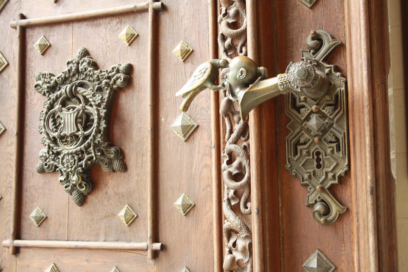 Очень примечательная дверная ручка. Голова турка и ворон,клюющий эту голову: