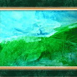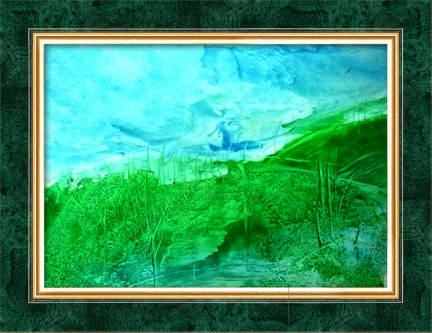 Разберем прием оттиск. На зеленой поверхности можно сделать растительность при помощи оттиска ,приложив утюг к только что нарисованному полю, холмам. Приложили и резко подняли!