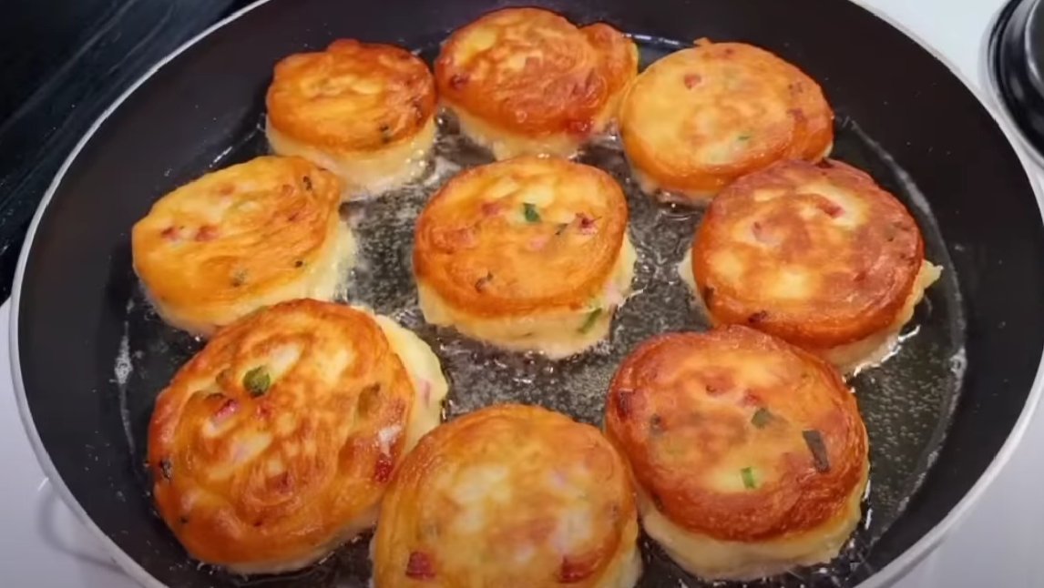 Обжариваем пирожки-оладьи до румяного цвета и выкладываем на бумажную салфетку, чтобы убрать лишний жир.