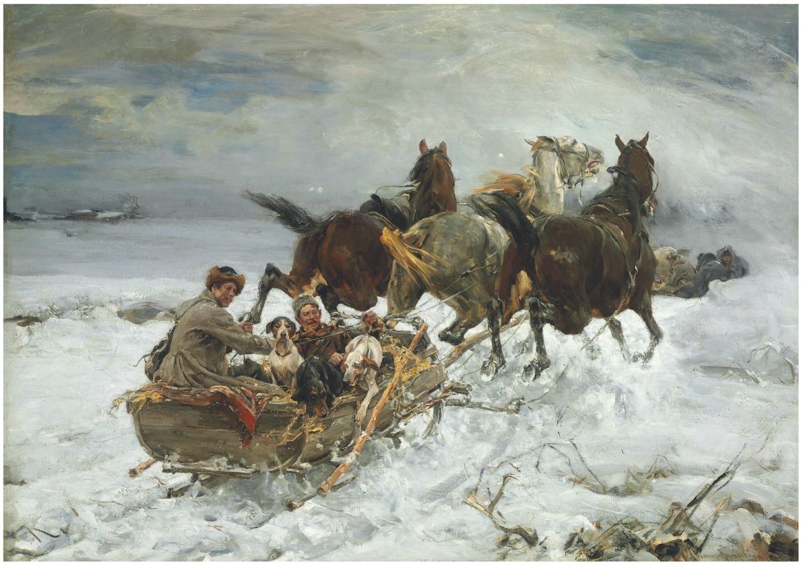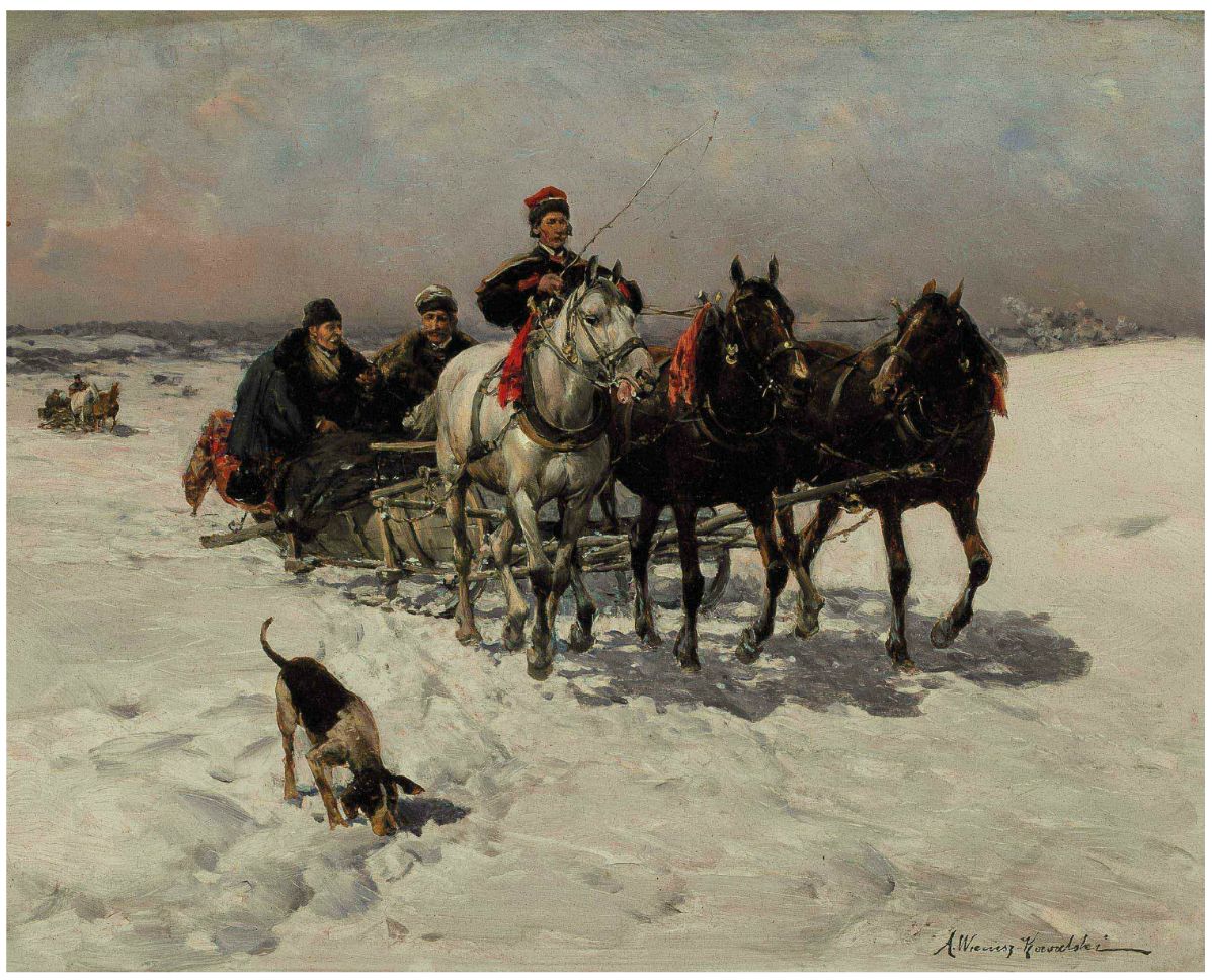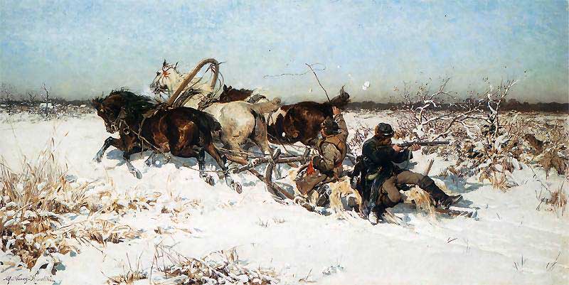 Если Вы неравнодушны к лошадям, то живопись этого художника Вам понравится. И дело тут не только в мастерстве. Глядя на картины, которые порою похожи просто на фотографии той поры, Вы увидите мгновения той эпохи, а главное живую жизнь и эмоции. А лошадки на жанровых работах знатные и... просто живые. Кстати картины Alfred Wierusz-Kowalski редко можно найти в коллекциях польских музеев, они продаются в основном на немецком рынке и осели в частных коллекциях в Германии и Соединенных Штатов.