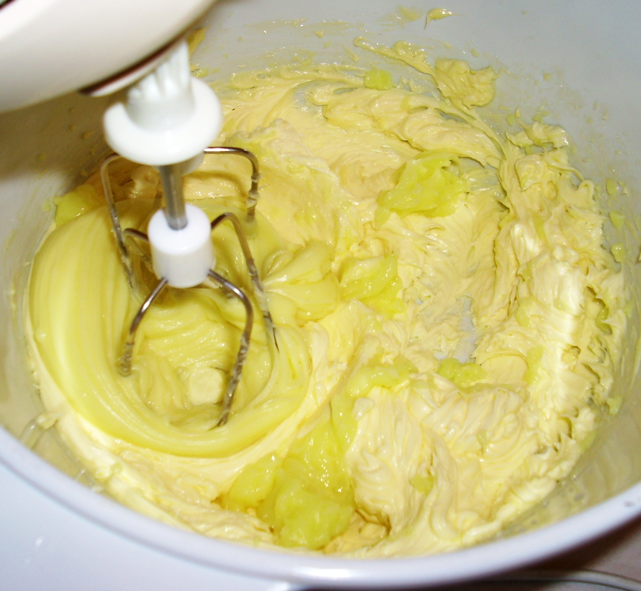 Масло взбивать, добавляя по одной столовой ложки холодного пудинга до однородной массы.