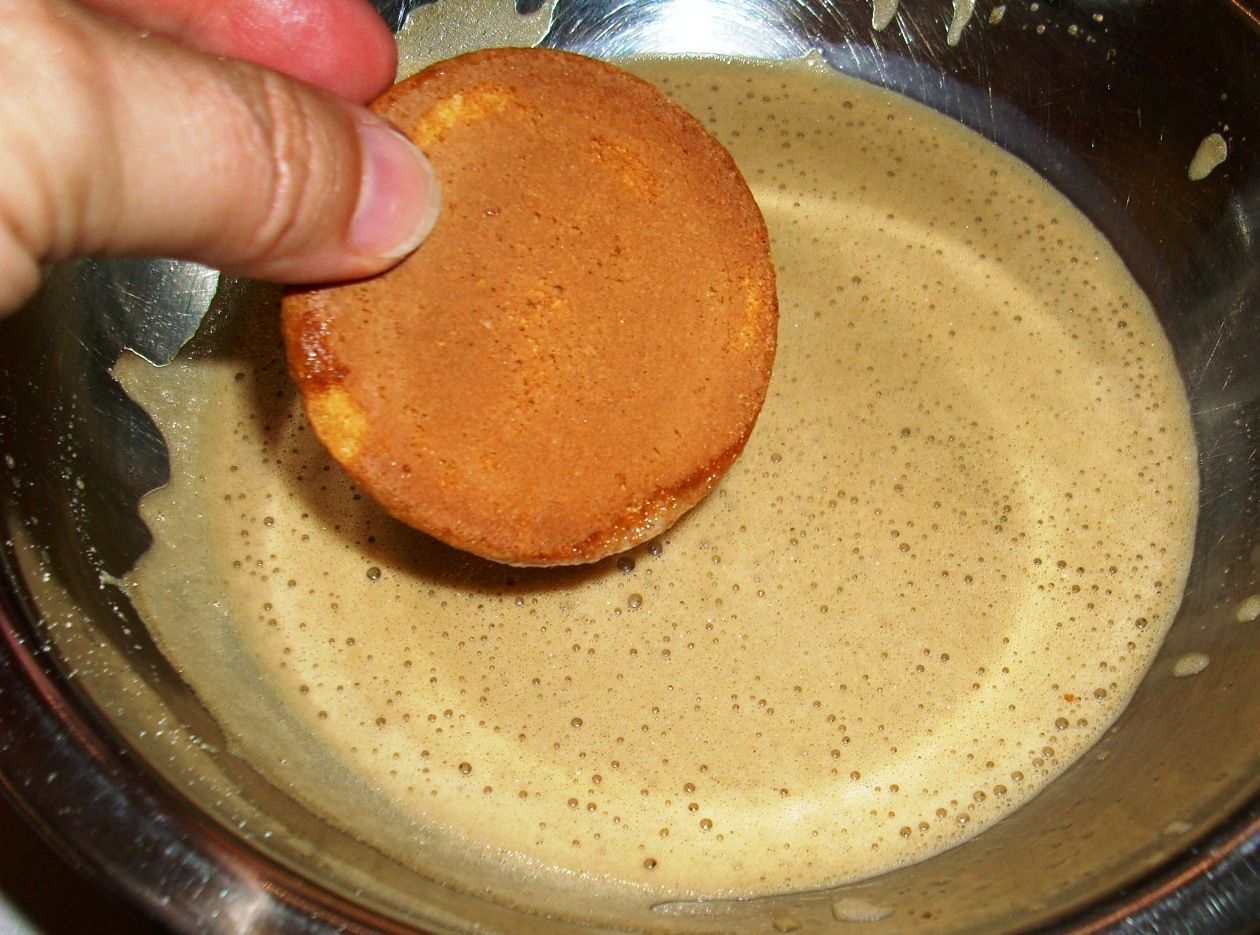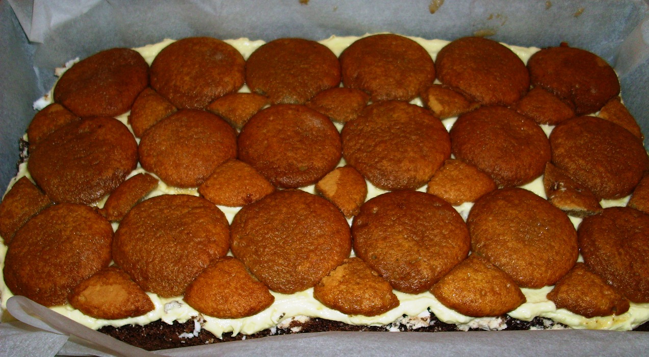 Печенье пропитать кофе капучин и выложить на крем
