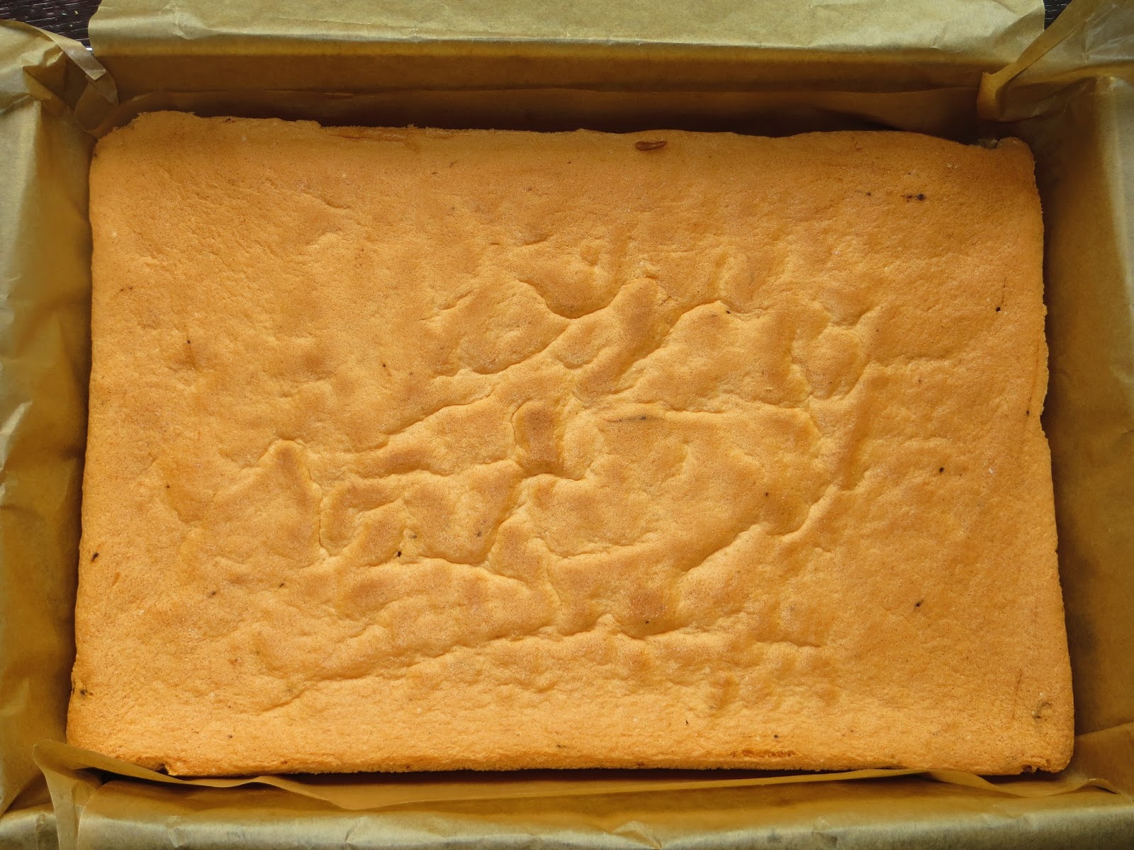 Белки взбить с сахаром , чтобы получить глянцевый безе. Затем постепенно добавить желтки и перемешать на минимальной скорости. Добавить муку, кисель и разрыхлитель и перемешать аккуратно. Выпекать в течение 40 минут при температуре 175 градусов. Остудить.