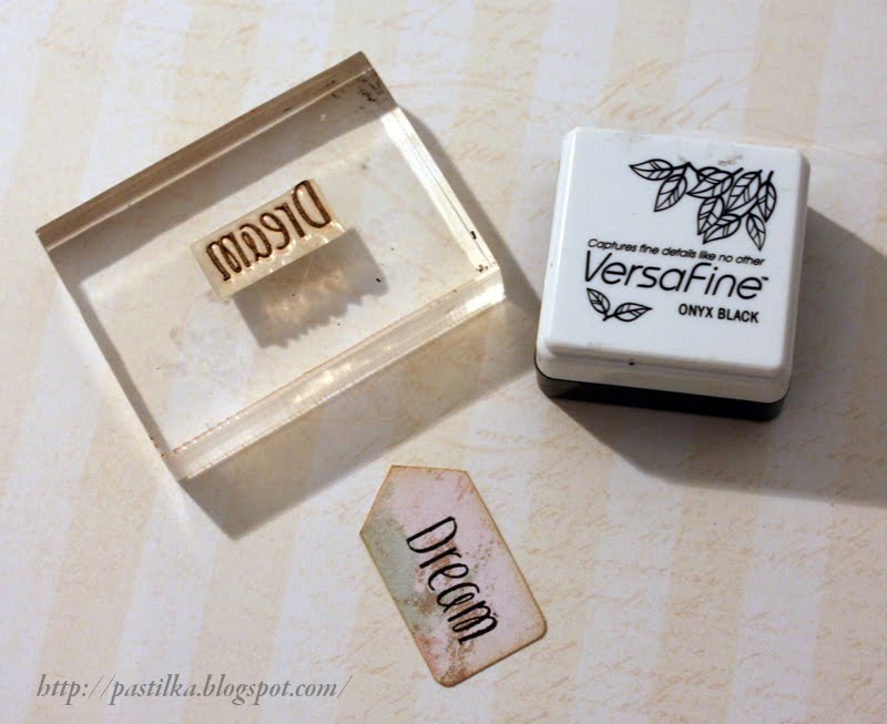 [показать]13. Из обрезка подходящей бумаги вырезаем тег 1.5х3 см. Тонируем и ставим тектовый штампик.