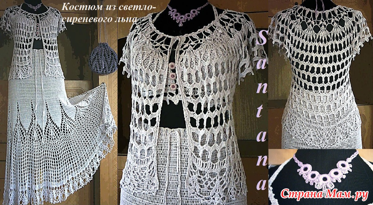Костюм этот был связан очень давно, но тем не менее, он до сих пор остается в числе самых моих любимых. Связан он из 100% льна и поэтому, в летний зной в нем очень комфортно и удобно.
