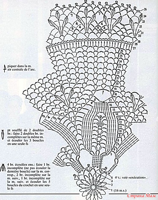 Схемку для каймы юбки я позаимствовала из схемки салфетки. Цветы на кокетке накидки, тоже из салфеточных схем (если мне не изменяет память, - из журнала "Лена" )