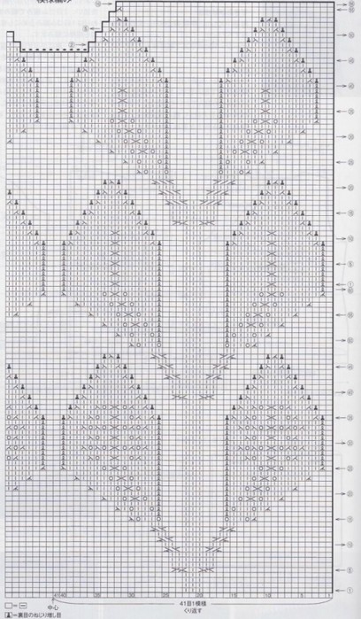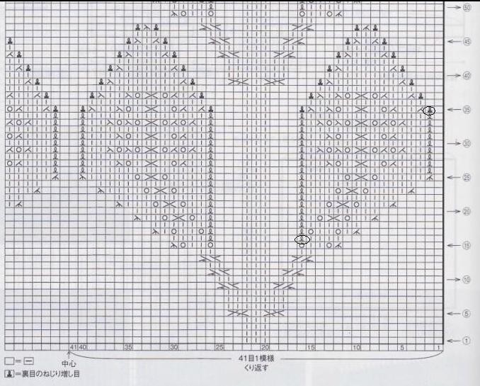 Сомнения по поводу узора:"Вот я почему никак к этим листьям приступить не могу... Потому что считаю убавки и накиды в схемах и у меня не сходится... Ну что, в конце каждого раппорта кол-во петель получается отличным от начала? Или я что-то не так считаю??? Вот в этой схеме тоже так... Накидов 28 в листике, а убавок 34... Т.е. в двух листиках в каждом раппорте общее кол-во петель уменьшается на 12???"Ответ Маргита: "Особенность узора " листья" именно в том, что в каждом ряду разное количество петель. Как правило число петель выравнивается в первом и последнем ряду листика."grinat : "В каждом лицевом ряду каждого листика количество убавок соответствует количеству накидов.В 15 ряду где начинается листик вяжем три петли вместе лицевой со смещением вправо, затем накид, две лицевые, накид. Таким образом сколько убавили столько и накинули. В 27 ряду 6 И 7 петли две вместе и сразу за этим накид"grinat: "Выполнено: нитки вита гармония,спицы номер 5, ушло 700 грамм с лишним, из ализе лана голд пробовала на 4,5 очень неплохо получается и расход ниток меньше будет грамм на 200. Но гармония в рисунке плотней, и по размеру точно по описанию выходит."