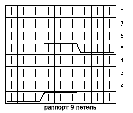 В схеме указаны только лицевые ряды, в изнаночных рядах все петли вязать изнаночными!