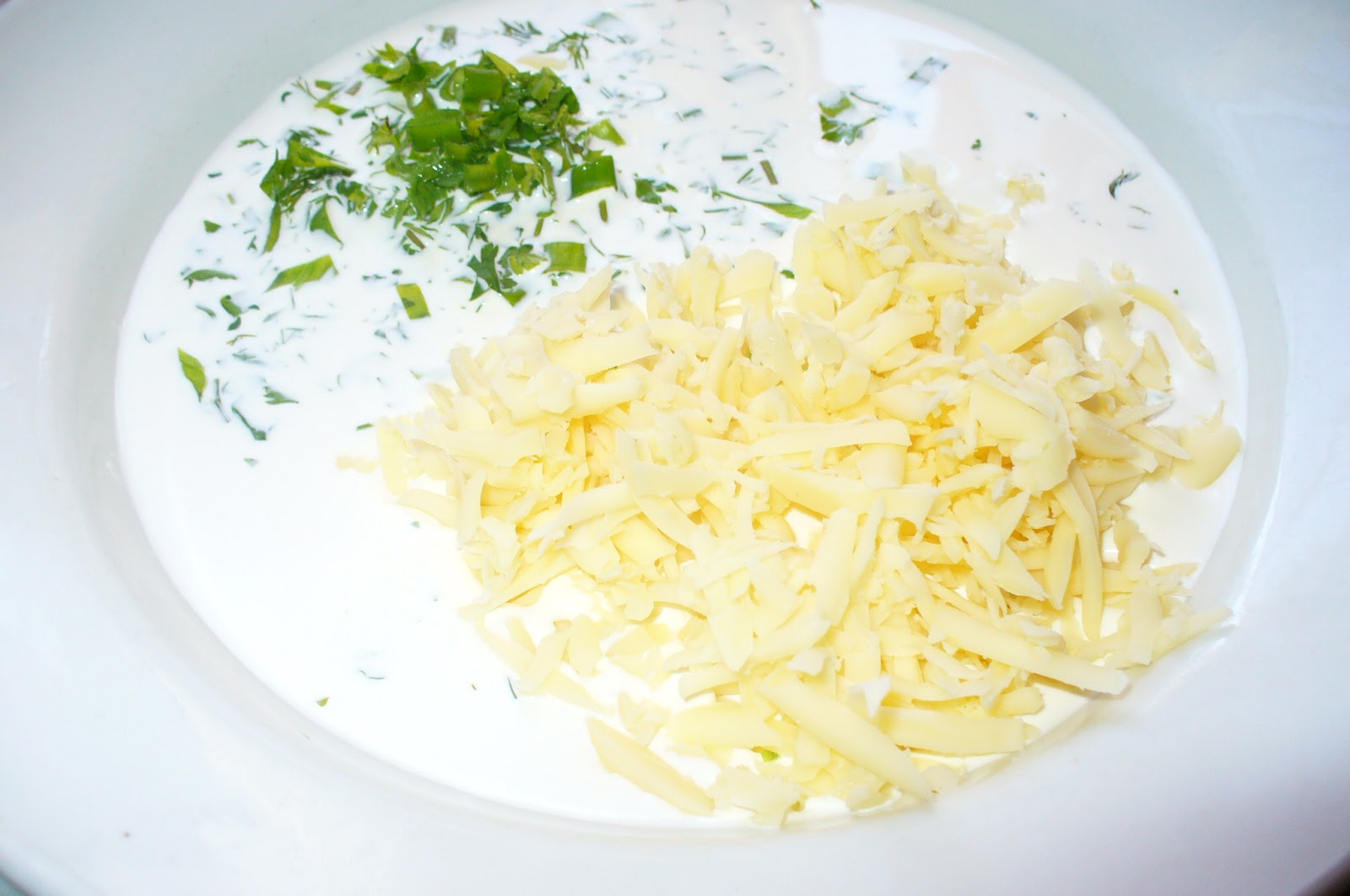 Посолите, поперчите и уложите в форму для запекания. Подготовьте соус для нашего рыбного филе – натрите сыр, смешайте его со сливками и рубленой зеленью.