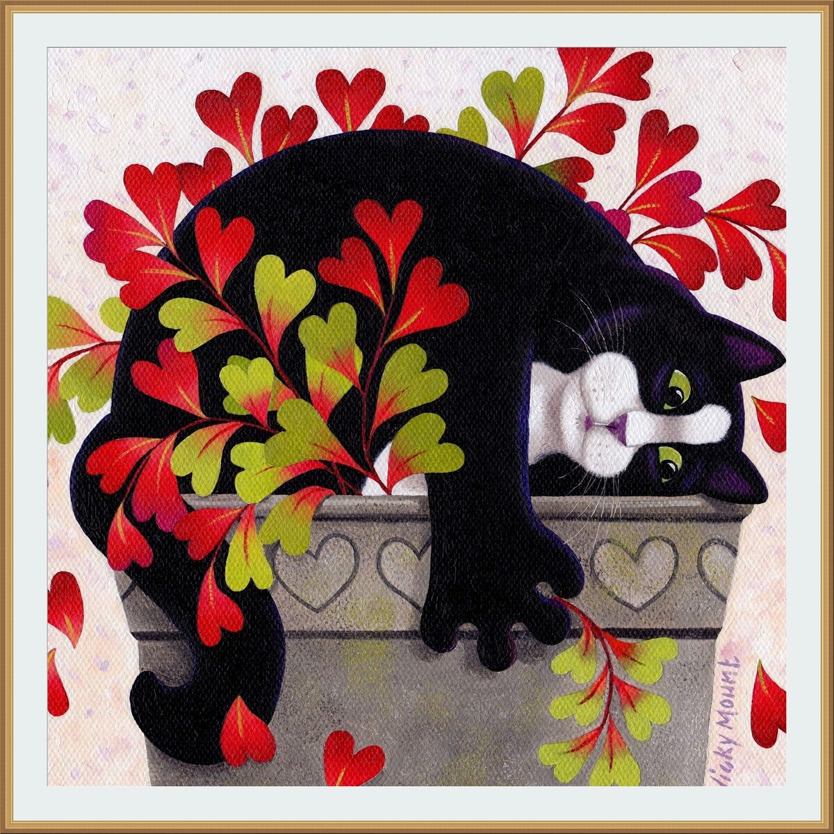 Художник Вики Маунт / Vicky Mount / Cat with ladybird / Кошка с божьей коровкой