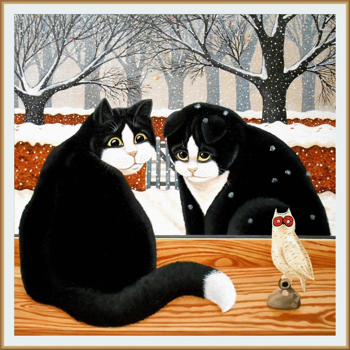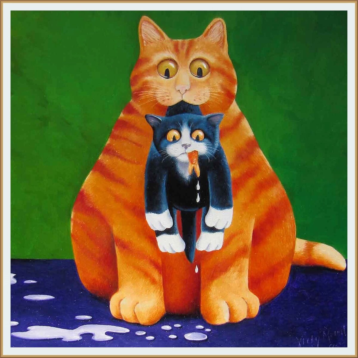 Сегодня я хочу представить вашему вниманию творчество художницы из Шотландии Вики Маунт, работы которой вы скорее всего уже видели в интернете, но полагаю, что будете рады ещё раз их лицезреть в этой публикации, особенно ежели вы кошатник или собачник. А тем более если это у вас в одном лице происходит, потому что большая часть творчества этого автора посвящено нашим братья младшим, а именно : рыжим, мохнатым, усатым, полосатым котикам и собакам.
