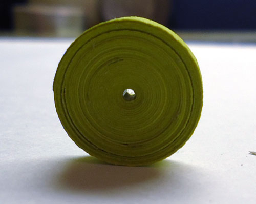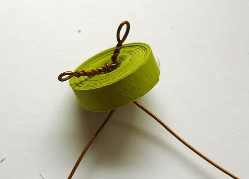 Из 4-х зеленых полосок скручиваем тугой ролл (его диаметр доолжен быть чуть больше или равен диаметру основания цветка).