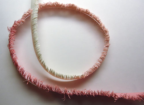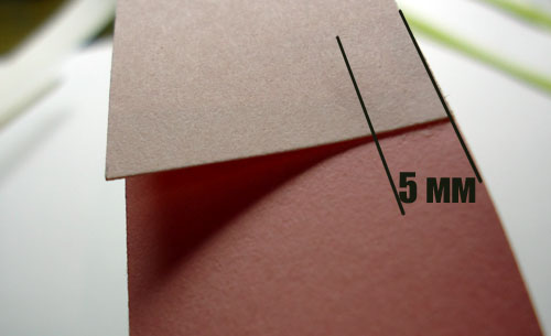 При склеивании мажем клеем только 5 мм от ширины полоски. Это то место которое останется непрорезанным, когда станем нарезать бахрому.