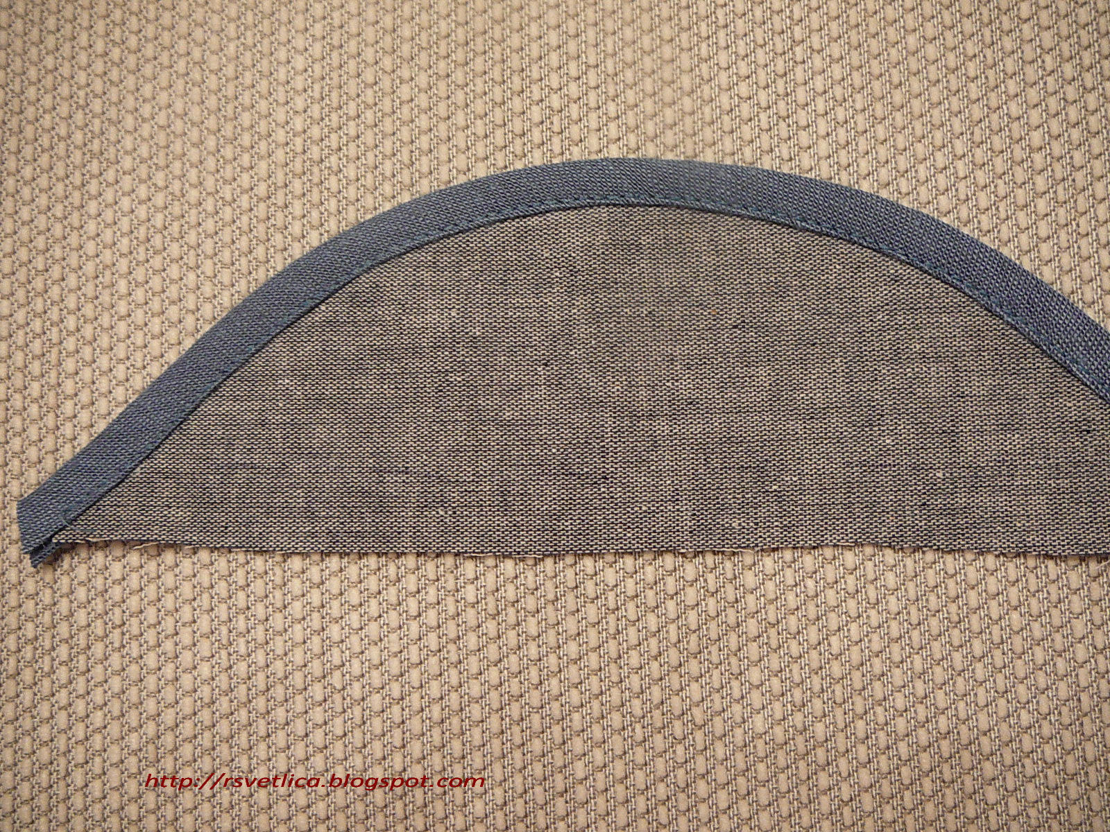 1. Выкроила, приготовила косую бейку и подкладочную ткань