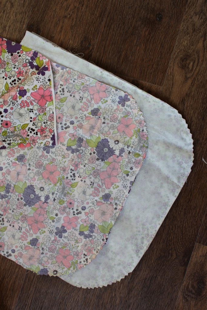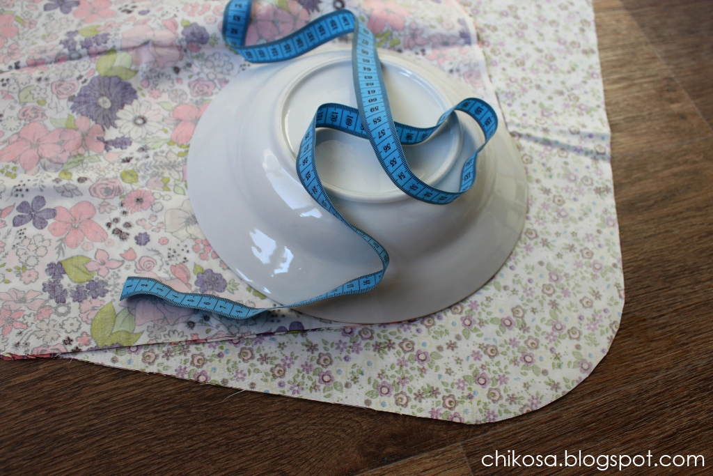 С помощью большой тарелки скруглим углы подклада и верхнего слоя сумки: