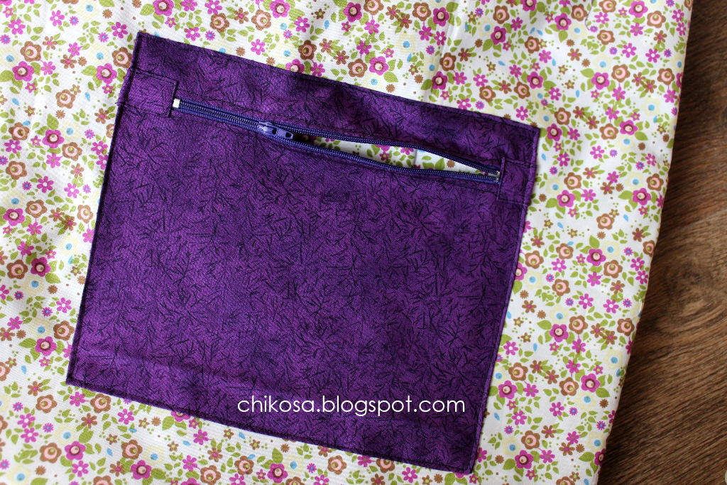 Тут я решила, что мне нужен карман. Сшила такой, немного не по правилам, совсем забыла, что боковые части, закрывающие замок, пришиваются в самом начале )))) Пришлось импровизировать. К тому же, сумка уже была сшита, карман пришивать было неудобно: