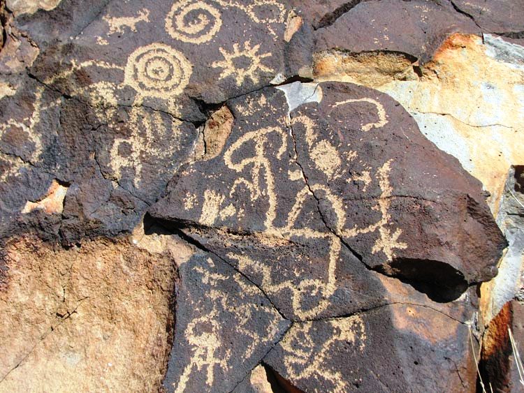Петроглиф. Штат Невада. Трехпалый человек - антропоморфное изображение нейтронной звезды. Спирали - перетекание вещества Солнца к звезде.