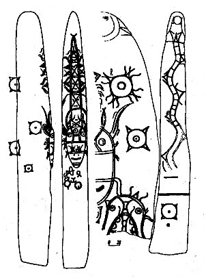 Прорисовка солярных знаков на «оленных камнях». Музей города Минусинск.
