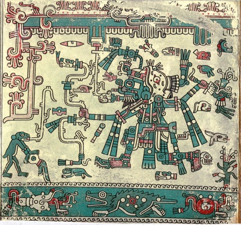 Кодекс Лауд (фрагмент). Ацтекский Тифон пожирающий индейца.